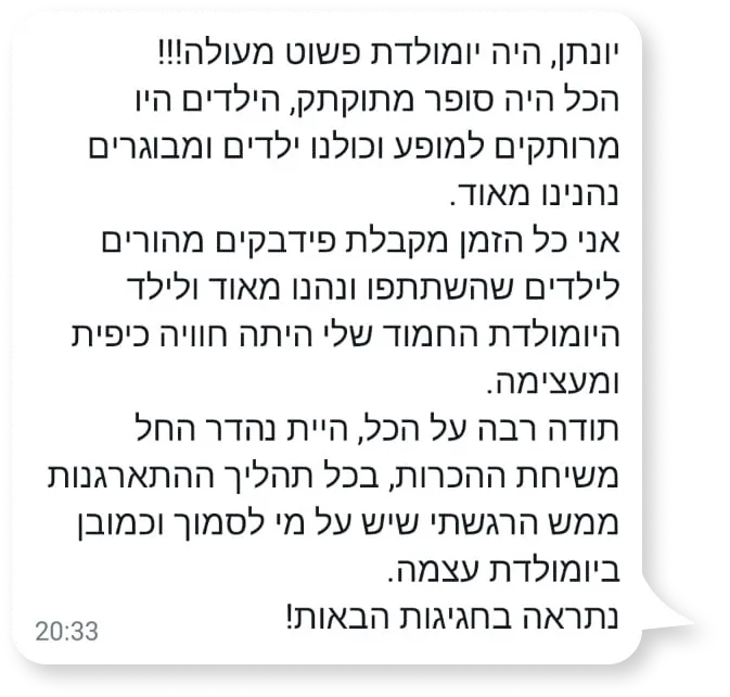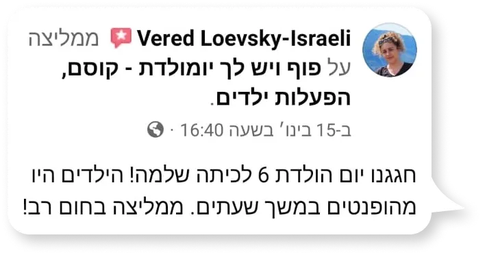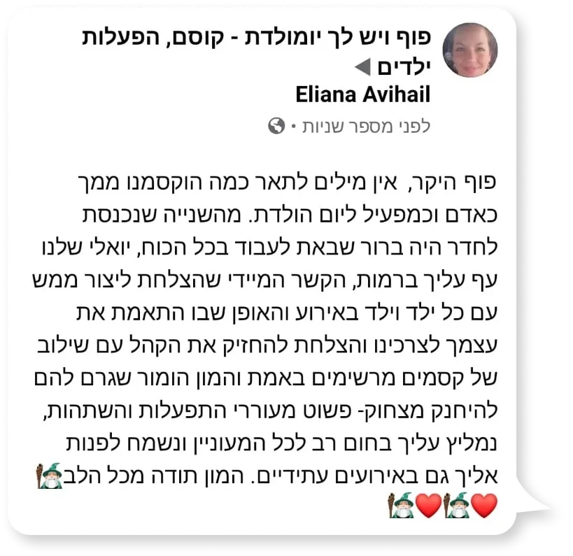 הפעלה אינטראקטיבית ומהפנטת שלוקחת כל יום הולדת רגיל ו...פוף! הופכת אותו לבלתי נשכח :)